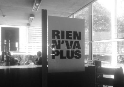 La photographie "RIEN N'VA PLUS" est l'affiche de l'exposition qui annonce l'exposition d'Eric Watier. Elle fut acceptée ainsi que deux autres "TOUT VA MIEU" et "BIEN VA TOUT " par 3 membres du personnel de la Médiathéque de Carré d'Art, puis, censurée, elle fut déccrochée à la demande de sa direction. © STUDIO POINT TO POINT.